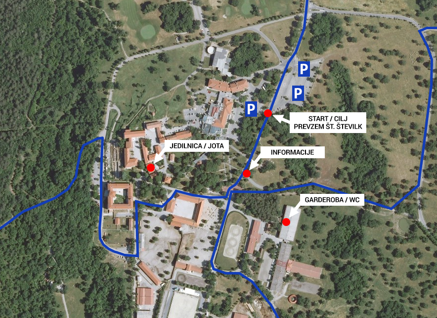 Za lažjo predstavo prireditvenega prostora na posestvu Kobilarne Lipica. Z modro barvo urisan tudi delček trase.